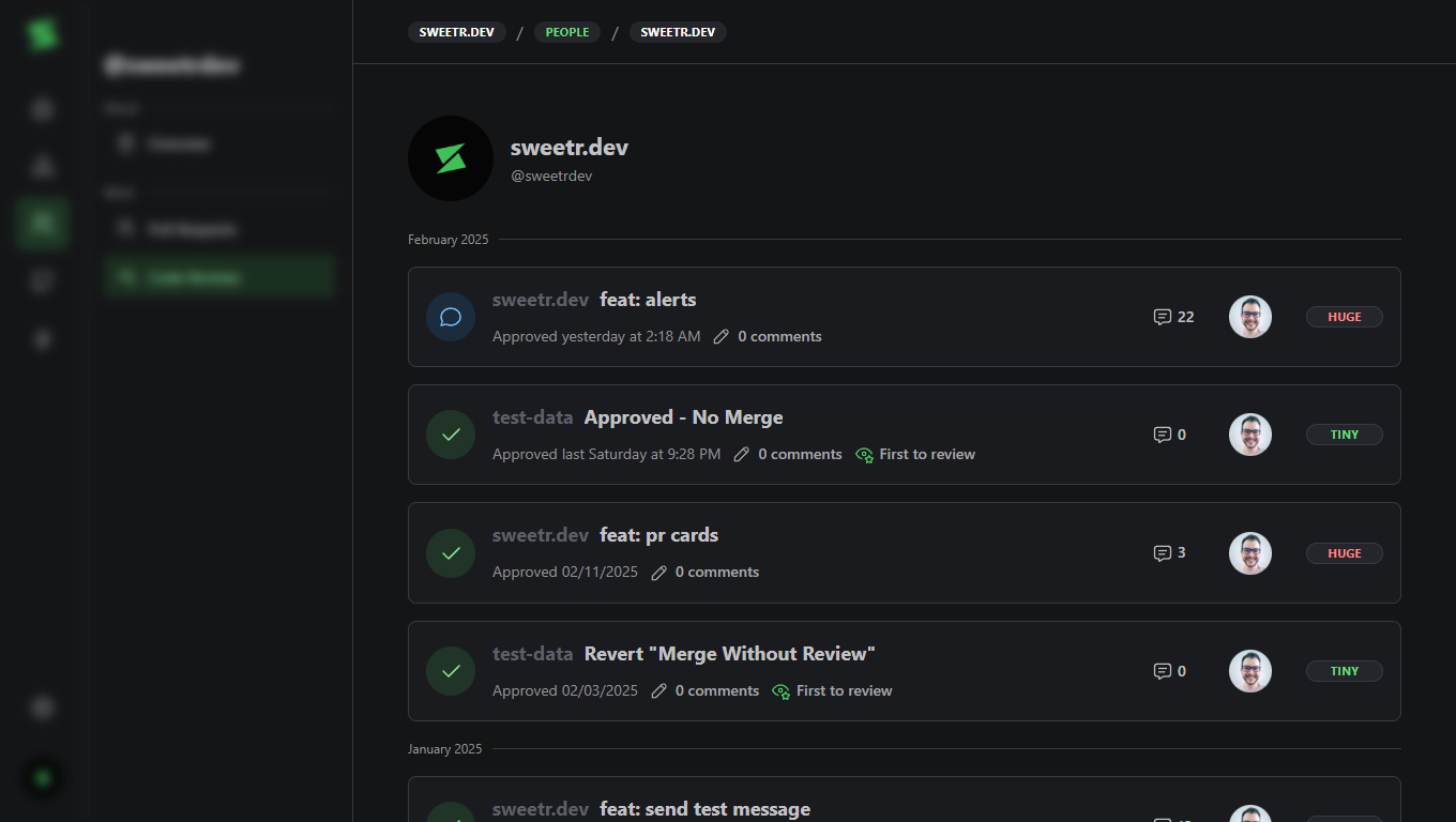- Easily see developer’s code reviews in one place. Quickly open the pull requests and go through the comments.